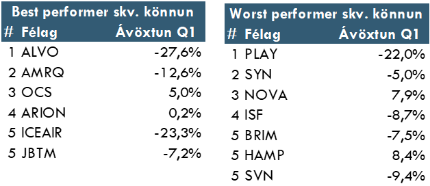 Hér að neðan má sjá nokkrar töflur sem fara yfir fyrsta ársfjórðung á hlutabréfamarkaði.