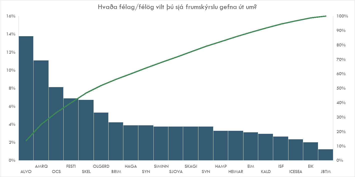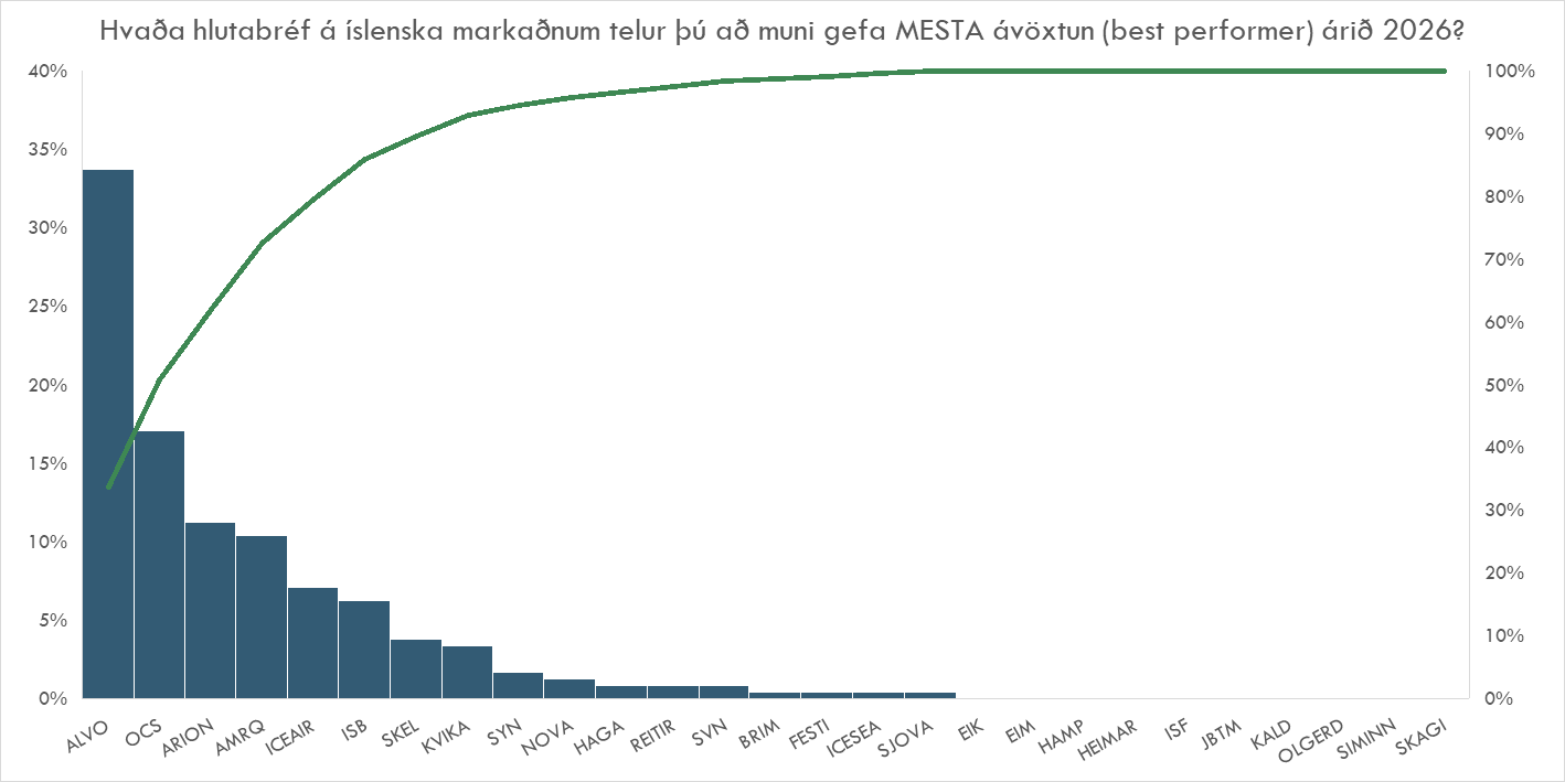 Spurning 1 - Hvaða hlutabréf á íslenska markaðnum telur þú að muni gefa MESTA ávöxtun (best performer) árið 2026?
