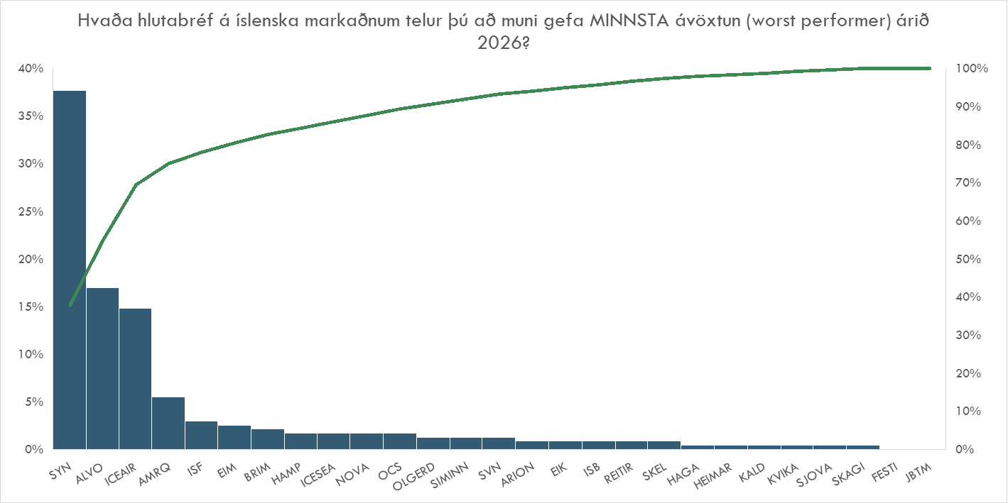 Spurning 3 - Hvaða hlutabréf á íslenska markaðnum telur þú að muni gefa MINNSTA ávöxtun (worst performer) árið 2026?