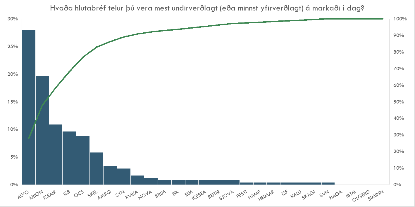 Spurning 2 - Hvaða hlutabréf telur þú vera mest undirverðlagt (eða minnst yfirverðlagt) á markaði í dag?