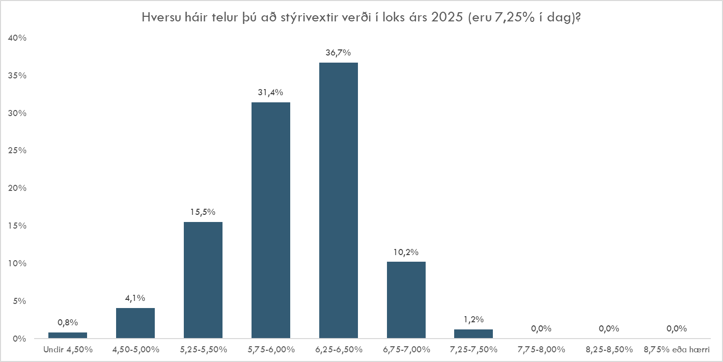 Spurning 6 - Hversu háir telur þú að stýrivextir verði í loks árs 2025 (eru 7,25% í dag)?