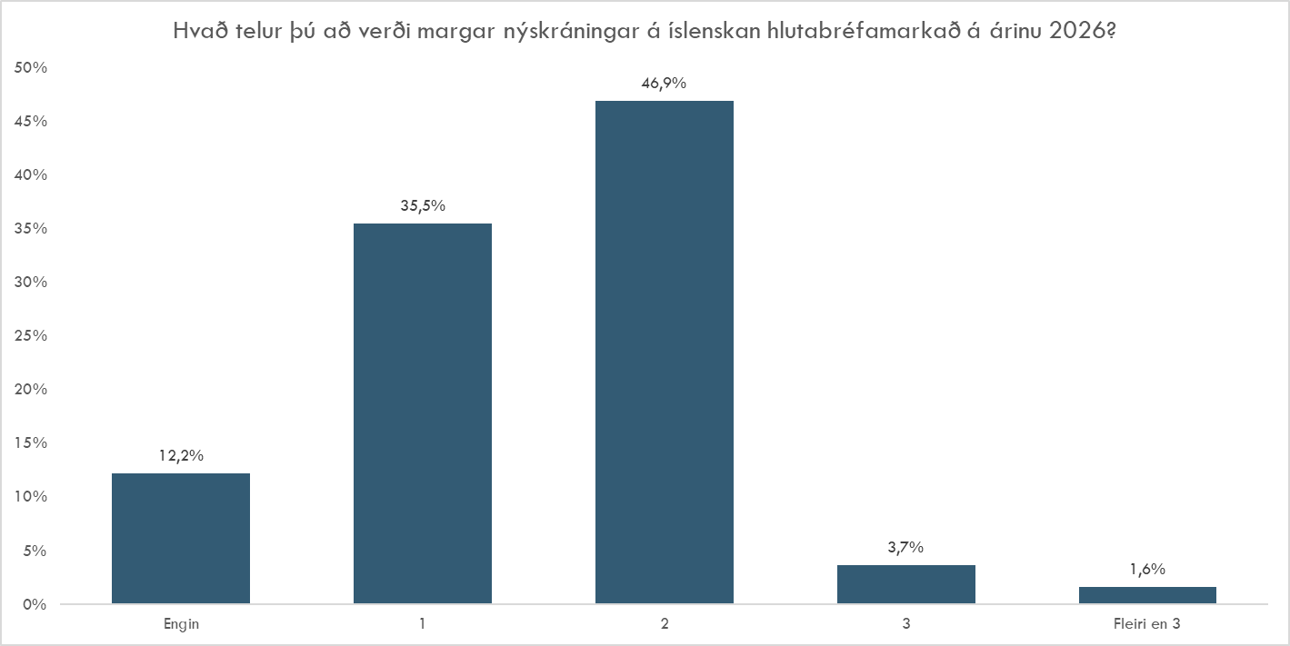 Spurning 8 - Hvað telur þú að verði margar nýskráningar á íslenskan hlutabréfamarkað á árinu 2026?