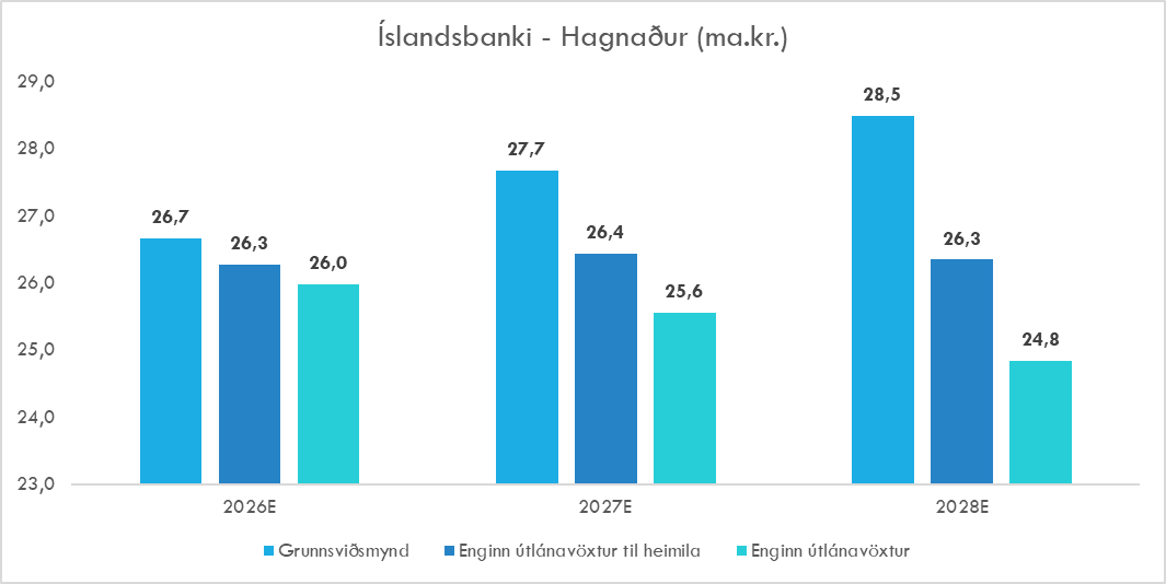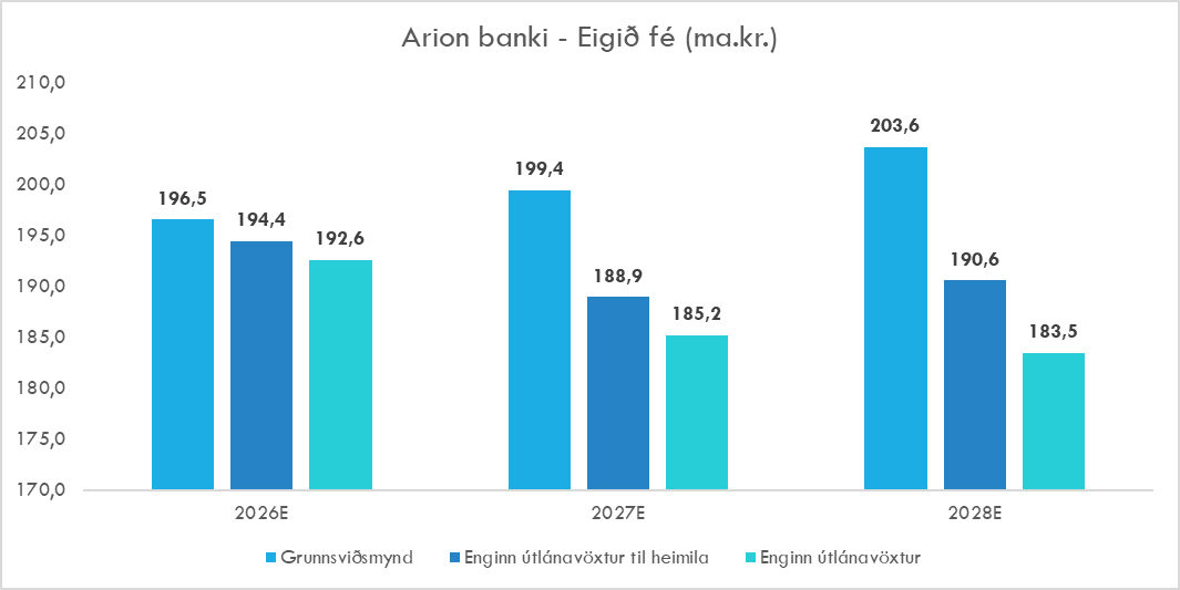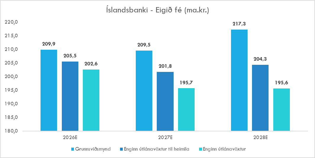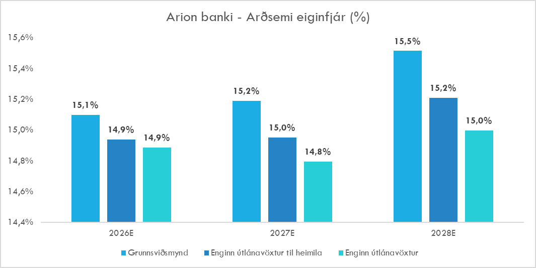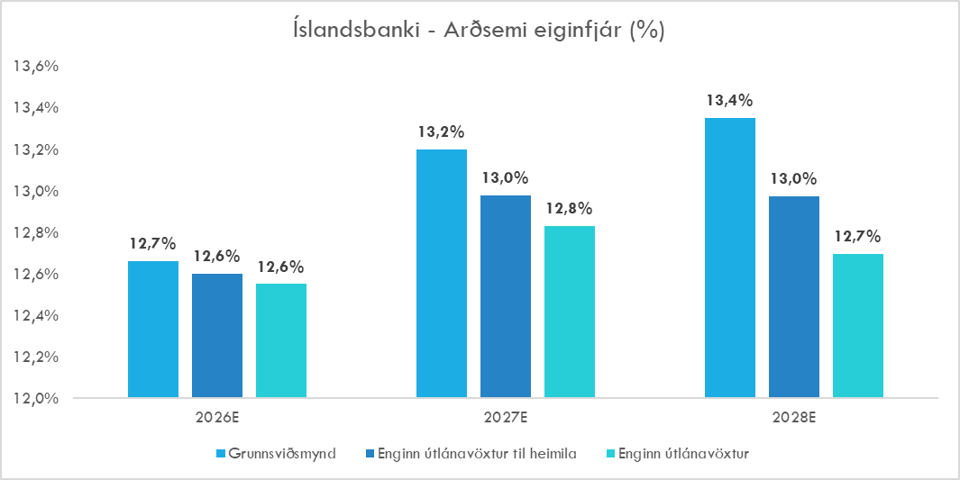 Áhrifin á arðsemi eiginfjár eru minni og áfram er hægt að ná ásættanlegri arðsemi þar sem minni útlánavöxtur þýðir að binda þarf minna eigið fé.